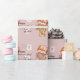 This cute custom Valentine day wrapping paper features a pastel, dusty pink theme with a sweet little teddy bear. A postal stamp is placed in the top right to resemble a mailed letter. A sample name is printed over a heart at the bottom which you can personalise to include your own name or other custom Valentine's day message.