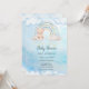 Cute baby shower invitations for baby boy featuring an adorable teddy bear, rainbow and clouds.