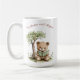 Celebrate the beautiful journey of motherhood with this heartwarming "Mama Bear Next Chapter" mug. Featuring a charming watercolor illustration of a teddy bear engrossed in a book under a lush tree, this mug evokes a sense of peace and anticipation for the new adventures ahead. The delicate script "Cathrines next chapter" adds a personal touch, making it a thoughtful gift for any expectant mother or a cherished keepsake for yourself. This delightful design is perfect for sipping your favorite warm beverage while reflecting on life's precious moments and the exciting new chapter about to unfold.