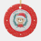 Cute Teddy Bear Red White Stars Merry Christmas Ceramic Ornament
