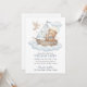 Cute Teddy Bear Sailboat Baptism Invitation Design