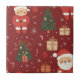 A charming Christmas pattern ceramic tile featuring adorable teddy bears dressed as Santa, festive gift boxes, decorated Christmas trees, candy canes, ornaments, and snowflakes on a deep red background. This cozy holiday design blends warm, hand-drawn illustrations with a playful winter feel.