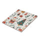 A charming Christmas pattern ceramic tile featuring adorable teddy bears dressed as Santa, festive gift boxes, decorated Christmas trees, candy canes, ornaments, and snowflakes on a white background. This cozy holiday design blends warm, hand-drawn illustrations with a playful winter feel.