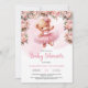 Cute teddy bear tutu ballerina with blush roses baby shower invitation,