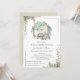 A sweet virtual baby shower invitation to welcome a baby boy in a new way by conducting the shower virtually online. This is a wonderful solution when family and friends are unable to gather in person, whatever the reason. This cute vintage inspired design has an adorable teddy bear wearing a chequered hat and matching bow tie. He is surrounded by a floral leafy wreath with antique floral corner embellishments. The text template has an easy-to-read layout that you can edit as you wish, add or remove lines of text and drag the text in place if you need to reposition it. Personalise with your baby shower details. There is ample room on the back of the invitation to add any additional instructions if you wish to add any additional text.