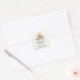 Business stickers with a cute illustration featuring a Victorian style teddy bear. Wearing a fancy red bow. Drawn in a a cute old fashioned vintage style. Red and blue pastel Christmas presents surround this warm-hearted bear.