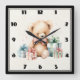 Cute Teddy Bear with Christmas Presents Square Wall Clock