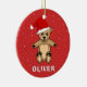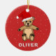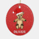 Cute Teddy Bear with Santa Hat Name Ceramic Ornament
