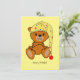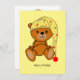 This cute Birthday Card features a cute Teddy bear with sleeping cap - hand drawn and digitally edited. The bear is brown, the sleeping cap is yellow with little stars.