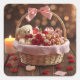 Cute Teddy Rose Basket Valentine Heart Square Sticker