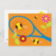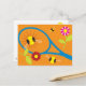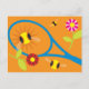 Cute tennis postcards for new address party & more. Colourful illustration of tennis racket with bee shape tennis balls and flowers. Custom post cards for moving, relocation, new home, change of address, Birthday event etc. Also nice as tournament invite or court side bbq party at the club house. Double side print. Fun graphics for tennis player, sports coach, trainer, teacher, kids, children, mum etc.