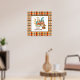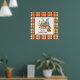 Cute Thanksgiving themed wall art features a pair of gnomes holding pumpkin and pie with Autumn coloured plaid background