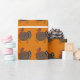 A cute thanksgiving turkey trotting along this orange wrapping paper