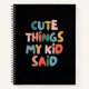 Cute Things My Kid Said Colourful Notebook