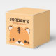 This design features cute tiger cartoon illustration with personalised name in brown modern sans serif font style on pastel orange background.