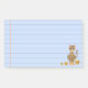 Lined Post it notes with a cute tiger cat cartoon and golden confetti on light blue background.