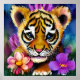 This image of a cute tiger cub surrounded by flowers is perfect for anyone who loves tigers.