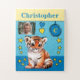 Cute tiger photo name blue yellow kids jigsaw puzzle