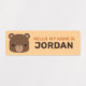 This design features cute tiger cartoon illustration with personalised name in brown modern sans serif font style on pastel orange background.