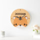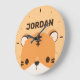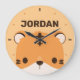 This design features cute tiger cartoon illustration with personalised name in brown modern sans serif font style on pastel orange background.