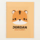 This design features cute tiger cartoon illustration with personalised name in brown modern sans serif font style on pastel orange background.