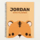 This design features cute tiger cartoon illustration with personalised name in brown modern sans serif font style on pastel orange background.