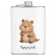The flask itself is fine. It’s a cheap flask, obviously bought in bulk, however am prepared to overlook that. Given that it is a personalized item, I would have liked to have seen gift boxing instead of the generic packaging. Terrible printing, and/or quality. It’s a cheap, tacky vinyl. It is not cut straight and is also applied in a way that it is overhanging the bottom, causing the glue to catch on items and it will eventually roll and tear, damaging the wrap.