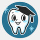 Cute tooth character wearing a mortarboard classic round sticker