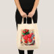 The printing came out very well, better than I had anticipated. The natural color fabric is sturdy with strong seams and comfortable handles. This tote fits easily over my shoulder. As it is filled, the bottom flattens out--very cool! I would buy this product again. This grocery tote holds a lot of groceries! The image quality was very good. The colors were a little darker than I had expected. The darkness may have been due to printing on a natural color fabric rather than on white. The cat design is attractively centered on the tote. The spirit of the design is very lively, just as it appears on the Zazzle website.