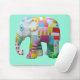 A cute design of a patchwork elephant in pastel rainbow colours against a light sky blue background. This animal is a whimsical, childlike, retro toy inspired design of a popular elephant Savannah African animal.