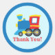 The blue stickers feature a red, yellow, and blue train engine and the words "Thank You"
