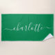 Cute Trendy Kelly Green Script Name Personalised Beach Towel