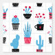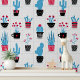 Cute Trendy Modern Cactus Red Blue Flower Pattern Wallpaper