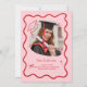 Cute Trendy Pink Wavy Border Graduation Invitation