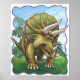 Animal Parade Cute Triceratops Dinosaur Gifts and Accessories brought to you by Imagine That! Design features our original art of a cute triceratops from the front and the back standing in a green prehistoric landscape with a textured blue sky and a fun wavy purple border painted by our talented children's illustrator, Traci Van Wagoner. This playful triceratops dino is great gift for kids of all ages, and is sure to bring a smile to the faces of all dinosaur lovers on your gift list.