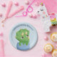 Party paper plates with the illustration of a cute green little triceratops peeking out of the blue eggshell. Perfect for dinosaur themed baby shower for mum to be who are expecting baby boys. Add your message in text template provided. Matching napkins are available too.