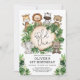 Celebrate your little boy's 1st birthday with this whimsical safari-themed party invitation. The design features a group of adorable jungle animals and lush tropical watercolor greenery