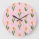 Cute Tulip Flower with Raindrop Pattern Large Clock
