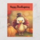 Adorable picture of a baby turkey wearing a pilgrim's hat, is featured on this Thanksgiving postcard. Front of postcard reads, "Happy Thanksgiving" and back of postcard reads, "I am thankful to God for having you in my life". A wonderful postcard to send family and friends for the Thanksgiving holiday!