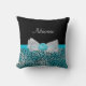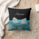 Cute Turquoise Cheetah Print Frilly Bow and Name Cushion