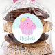 Cute turquoise cupcake sweet modern name school classic round sticker