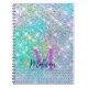 Cute Turquoise unicorn faux glitter monogram Notebook