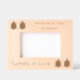 This awesome etched wooden photo frame features a cute image of a blue turtle and a pink turtle side by side. The cute couple have eyes only for eachother and cute little tails. The shell of the turtle is made of two shades of pink for the female and blue for the male. These guys are turtally in love. There is custom text so you can personalise this design with the names of the couple and a message.