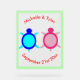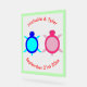 This awesome Wedding acrylic Sign features a cute image of a blue turtle and a pink turtle side by side. The cute couple have eyes only for eachother and cute little tails. The shell of the turtle is made of two shades of pink for the female and blue for the male. These guys are turtally in love. There is custom text so you can personalise this design with the names of the happy couple and the Wedding date