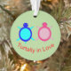 This awesome acrylic ornament features a cute image of a blue turtle and a pink turtle side by side. The cute couple have eyes only for eachother and cute little tails. The shell of the turtle is made of two shades of pink for the female and blue for the male. These guys are turtally in love and would make a great gift for couples.