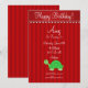 Fancy green turtle invitation with red stripes, scallop border with hearts perfect for a turtle themed birthday party
