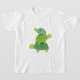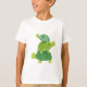 This work is an illustration of a family of three sweet green turtles stacked on top of each other. The turtles have a unique hexagon pattern on their shell in shades of lime green, teal and turquoise. Such a cute design for anyone who loves turtles!