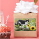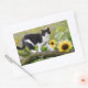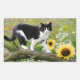 Cute tuxedo cat on a tree branch with sunflowers - rectangular sticker