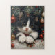 Cute Tuxedo Kitten Christmas Cat Jigsaw Puzzle