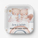 Cute twin bear star balloon baby shower party paper plate